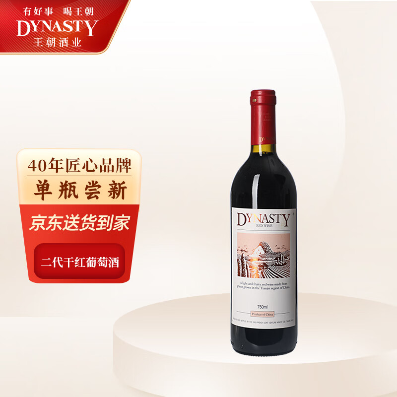 王朝(DYNASTY)干红葡萄酒二代750ml单瓶装 国产红酒价格:65.00元!