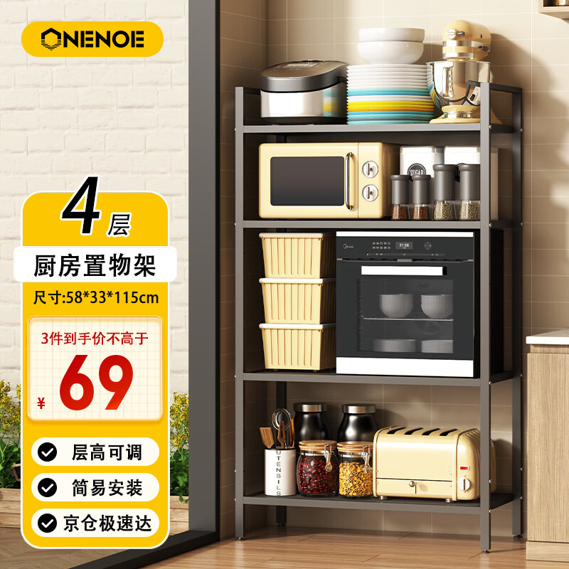 网纳厨房收纳架置物架家用电器架落地多用储物架客厅杂物架灰色1805H1价格:119.00元!