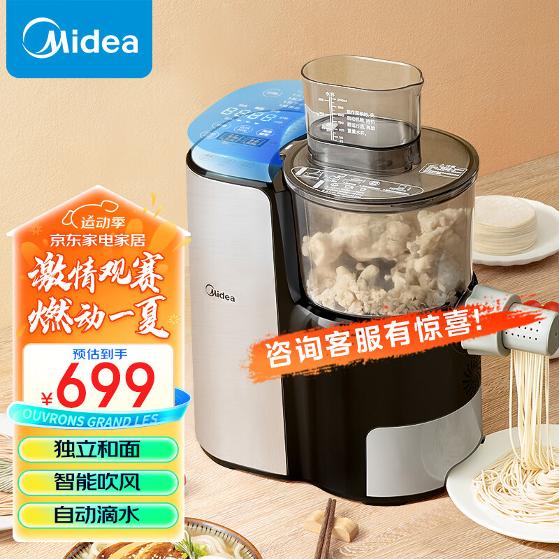 美的(Midea)面条机 压面机家用 全自动电动饺子皮机 智能吹风小型家庭用 【9大模式出面】MJ-KM18Q5-401价格:699.00元!