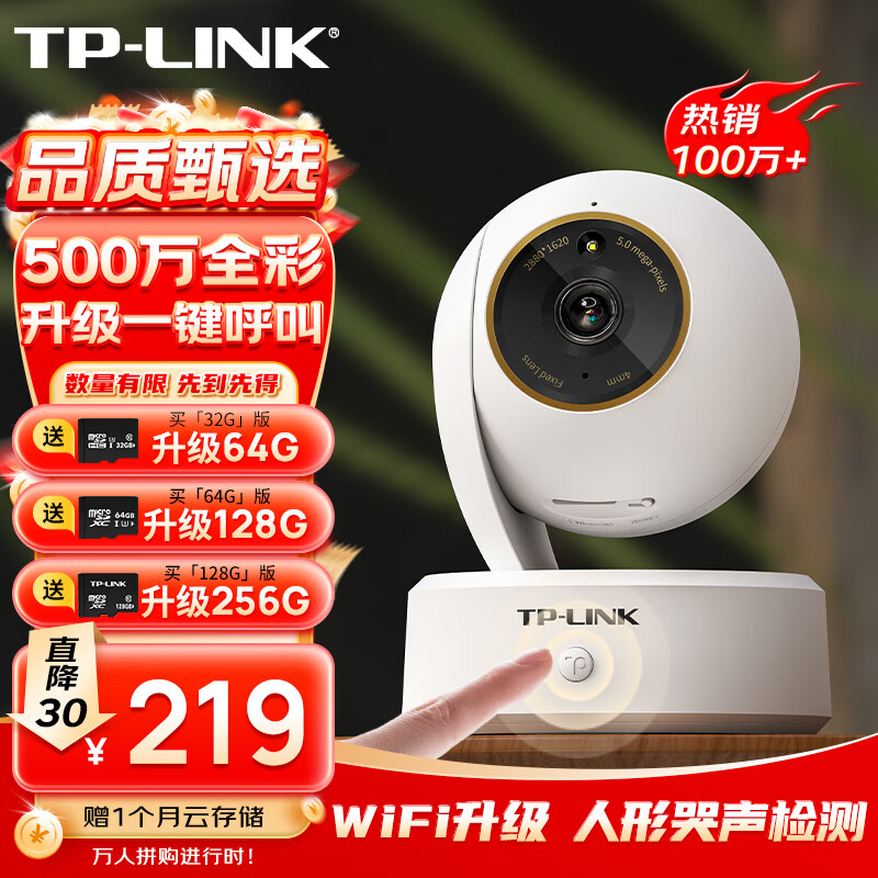 TP-link 500万监控摄像头家用监控器360度无死角带夜视全景无线家庭室内tplink手机远程看护器宝宝监护器价格:219.00元!