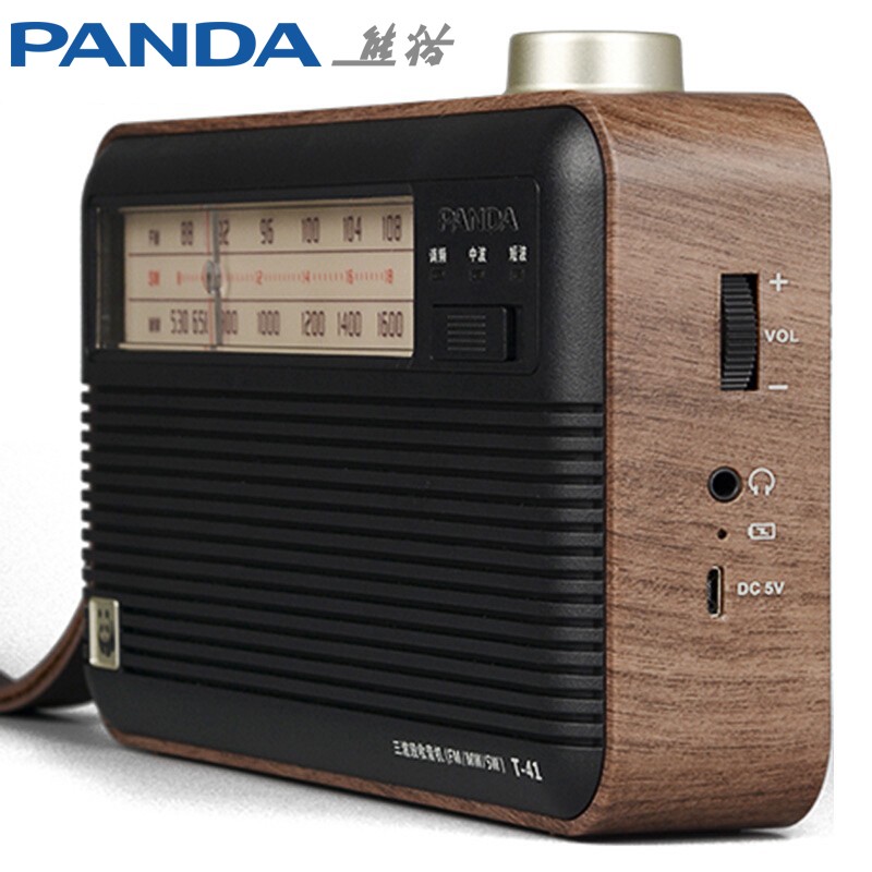 熊猫(panda)T-41 怀旧复古全波段收音机锂电池三波段大喇叭木纹老人半导体价格:158.90元!