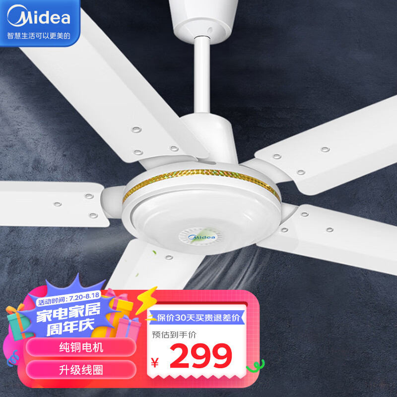 美的(Midea)FC140-DD吊扇大风力56吋家用5叶轻音铁叶多档客厅餐厅电扇商用电风扇(购买请联系客服)价格:309.00元!