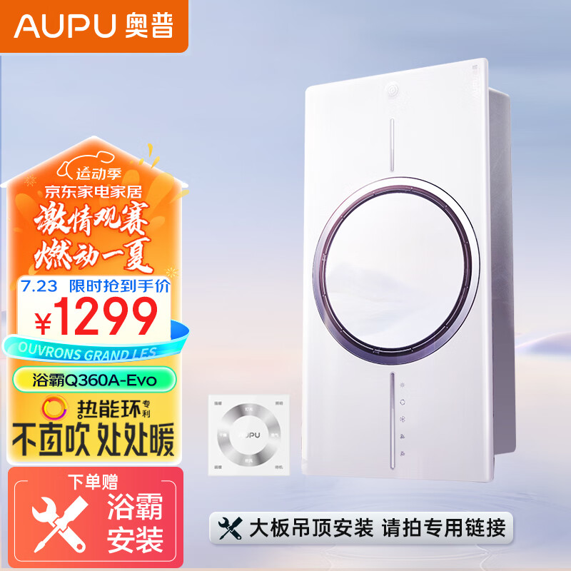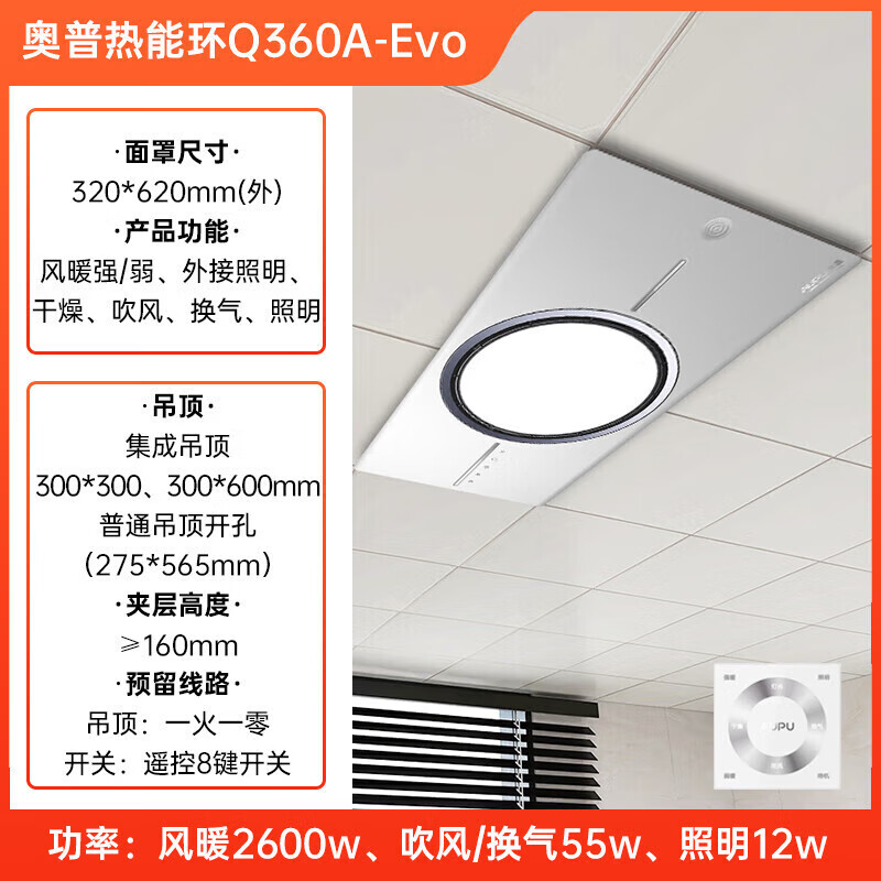 奥普(AUPU)浴霸Q360A-EVO热能环风暖浴霸遥控开关外接照明奥普360ae价格:1699.00元!