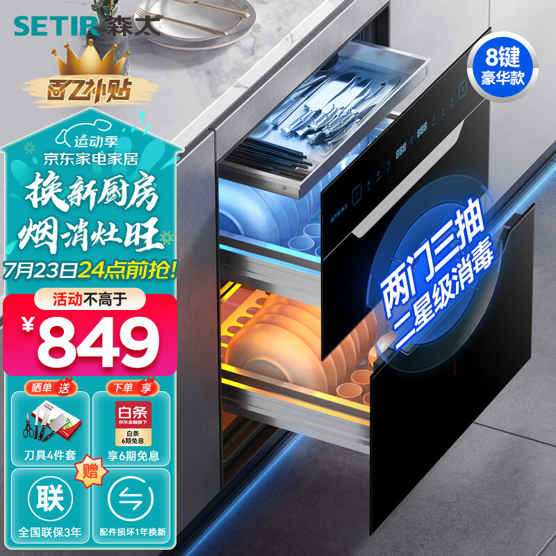 森太(SETIR)F280B消毒柜嵌入式家用小型镶嵌式内嵌式消毒碗柜 二消毒【八键负离子款】价格:999.00元!