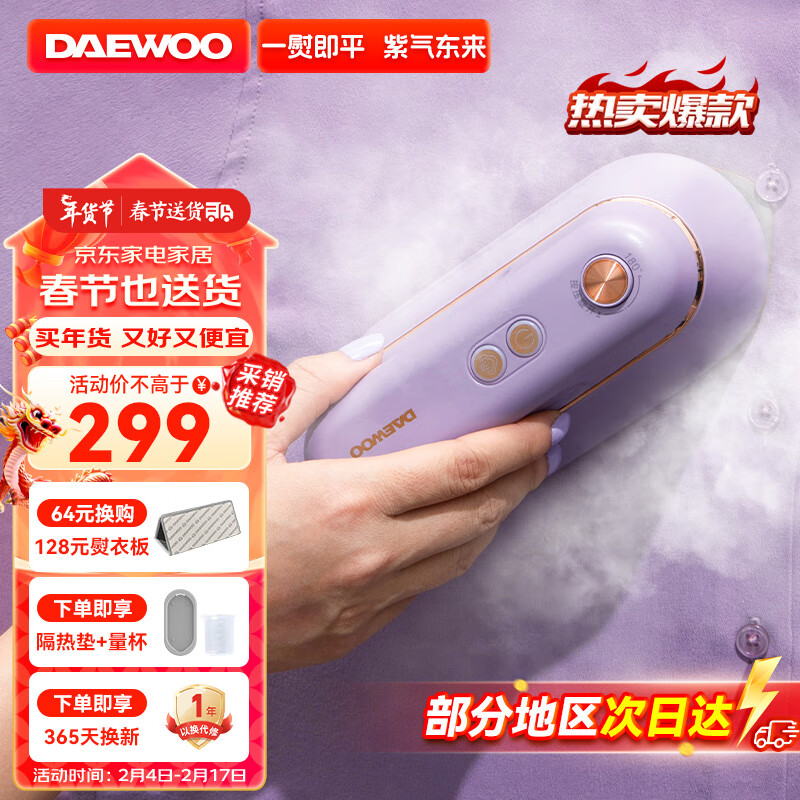 大宇(DAEWOO)挂烫机家用蒸汽电熨斗熨烫机 手持挂烫机熨衣机旅游出差便携式小型除菌除螨熨斗HI-029-ZI价格:387.70元!
