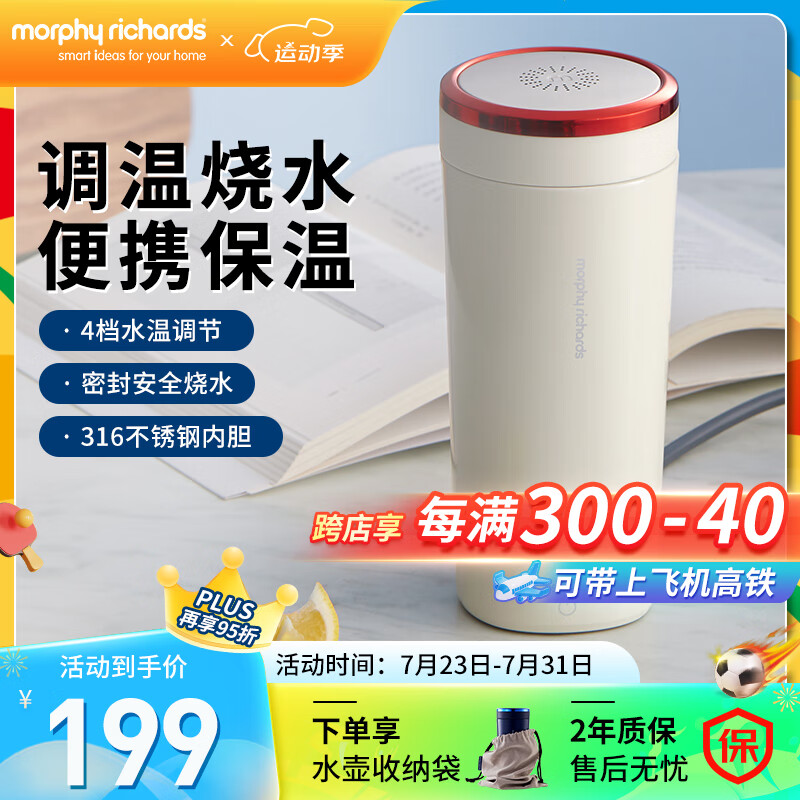 摩飞电器(Morphyrichards)电水壶 电热水杯 便携式家用旅行烧水壶 随行冲奶泡茶办公室养生保温杯MR6060白价格:199.00元!