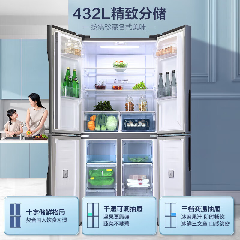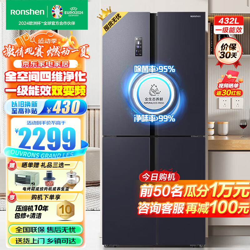 容声(Ronshen)冰箱432升双变频一级能效十字对开门四门冰箱家用风冷无霜净味超薄机身大容量 BCD-432WD13FPA价格:2599.00元!