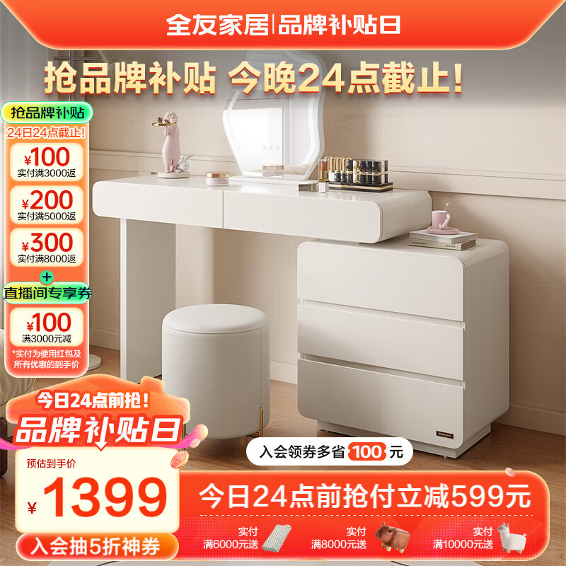 全友家居 梳妆台现代简约可伸缩转角智能触屏妆镜卧室化妆桌129553价格:1998.57元!