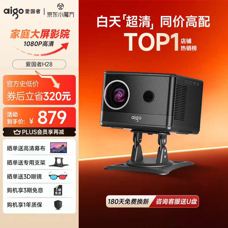 爱国者(aigo)H28 投影仪家用高清办公 1080P智能家庭影院(无感自动对焦 自动入幕 自动避障 航空级悬浮音箱)价格:1199.00元!