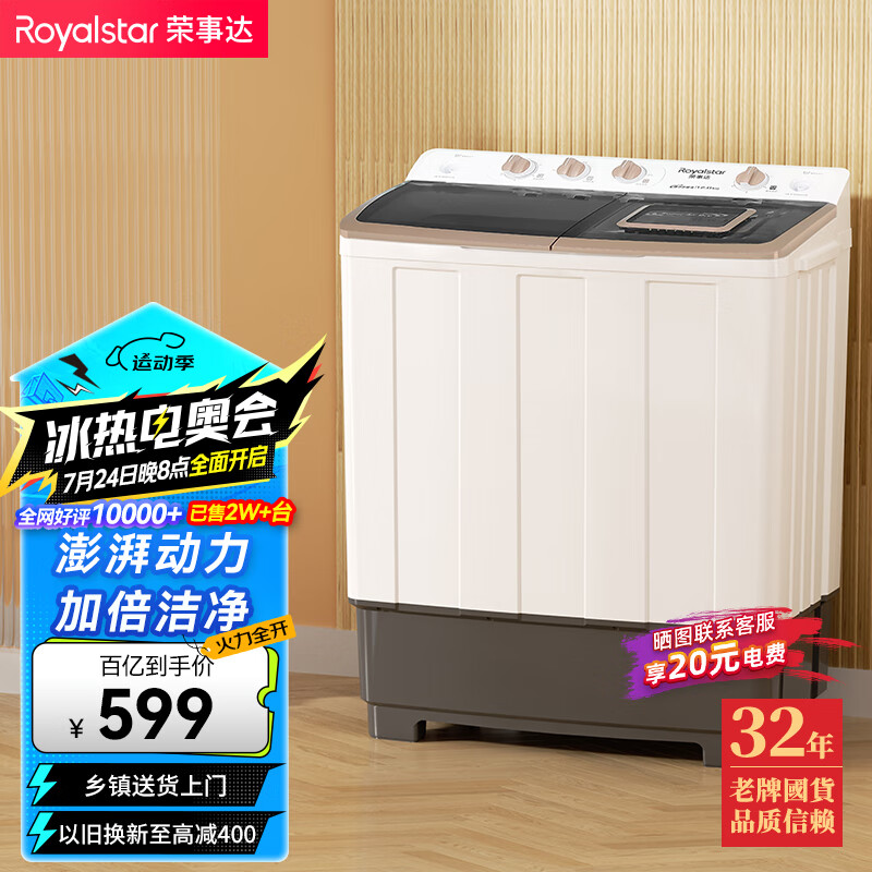荣事达(Royalstar)洗衣机 12公斤双筒家用双缸半自动双桶洗衣机大容量甩干机 以旧换新 RP12030J价格:639.00元!