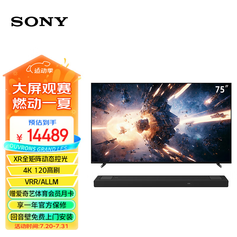 索尼(SONY)XR-75X90L+HT-A5000 旗舰游戏套装 回音壁 360智能穹顶 无线家庭影院 4K/120 VRR ALLM价格:14489.00元!
