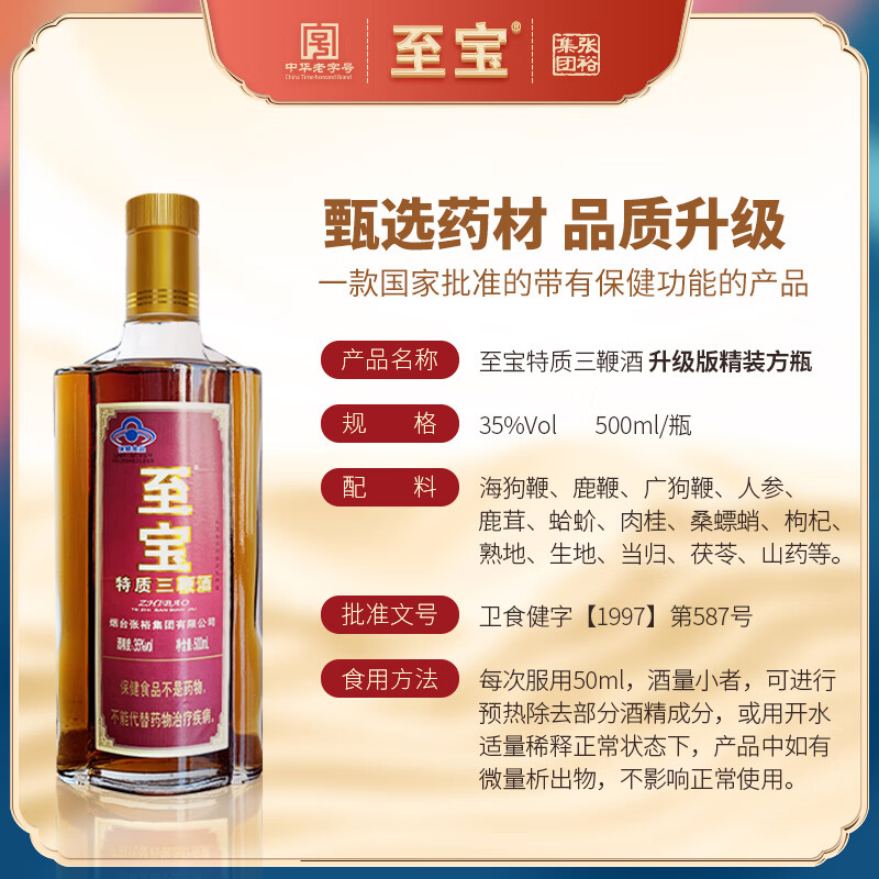 至宝特质三鞭酒 升级版精装方瓶 35度 500ml 单瓶装价格:52.90元!