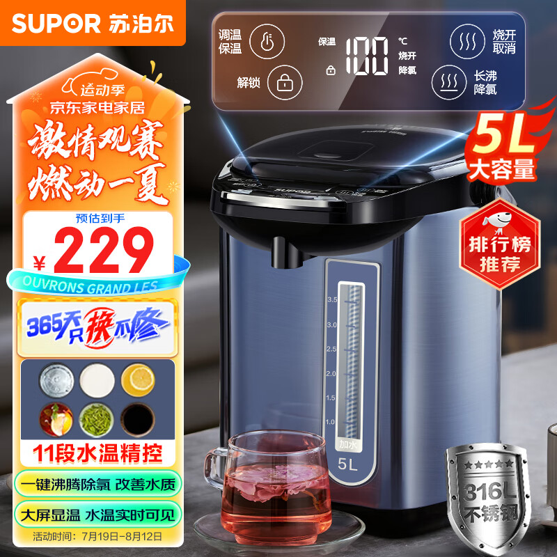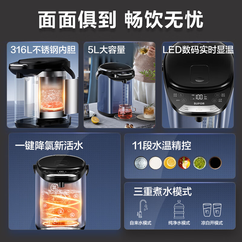苏泊尔(SUPOR)电热水瓶 家用烧水壶电热水壶开水壶电动饮水机5升大容量保温一体全自动恒温 316L不锈钢SW-50T80A价格:229.00元!
