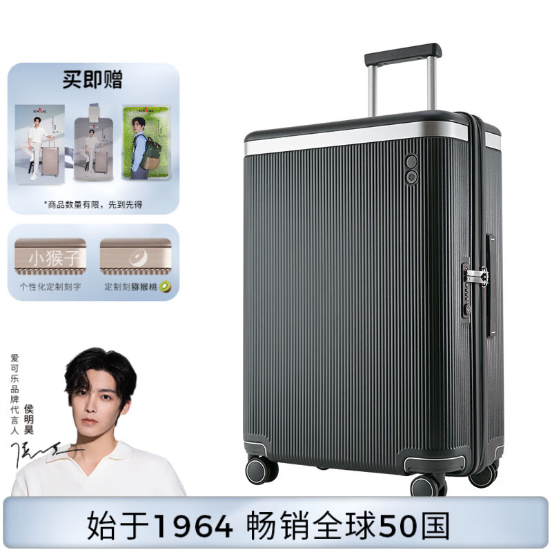 爱可乐(Echolac)明星同款大容量行李箱出国旅行箱王朝防刮拉杆箱深灰色20吋PC142价格:1699.00元!