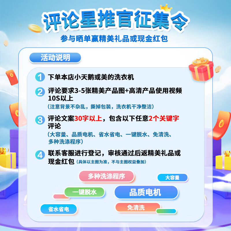 不得不说的是小天鹅TB100VT818WDCLY的质量参数,还有这款的开始销售的时间和用户的评价等等,如果你对此款感兴趣的话,不妨一起来瞧一瞧!功能齐全,操作简单易上手,满足了对产品的各种需求。