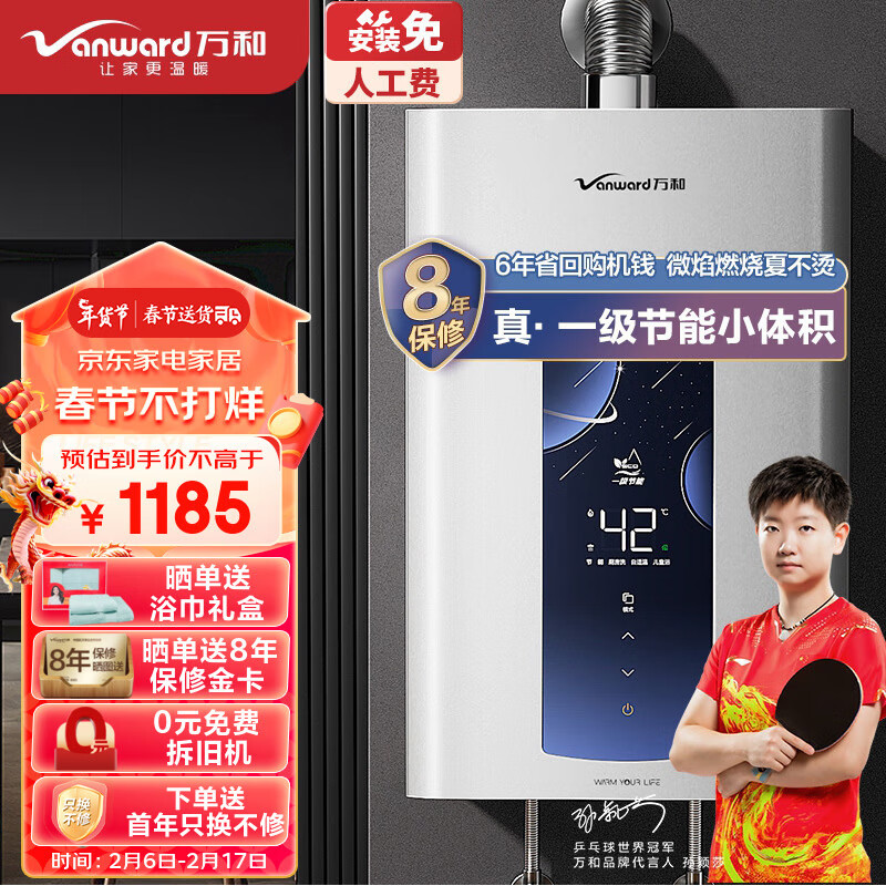 万和(Vanward)13升燃气热水器天然气小体积设计【真·一级节能】速热舱换热微焰控温±0.1°C精准恒温防冻 ME5J13价格:1185.00元!
