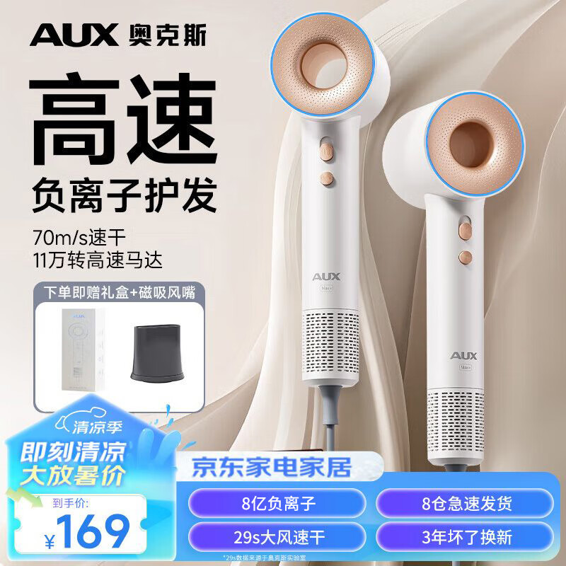 奥克斯(AUX)吹风机高速电吹风机家用大功率中空无叶吹风筒大风力速干负离子护发吹风机生日礼物送女友价格:308.90元!