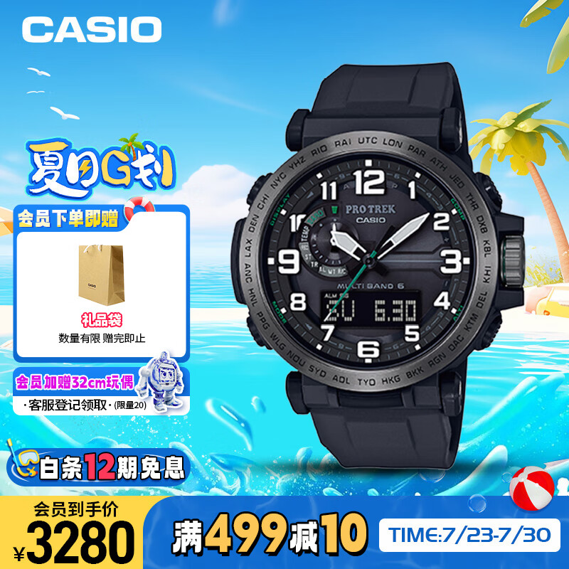 卡西欧(CASIO)手表男PROTREK光动能户外运动电子日韩表七夕送男友PRW-6600Y-1价格:3290.00元!