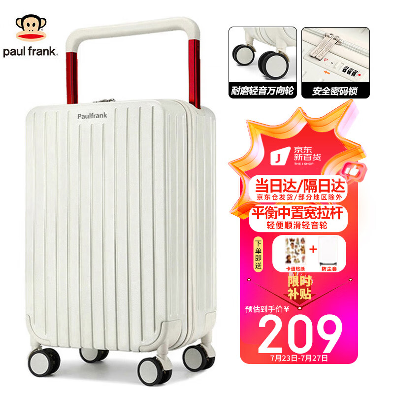 大嘴猴(PAUL FRANK)行李箱平衡宽拉杆箱男大容量22吋防刮旅行箱女轻音万向轮出差皮箱价格:209.00元!
