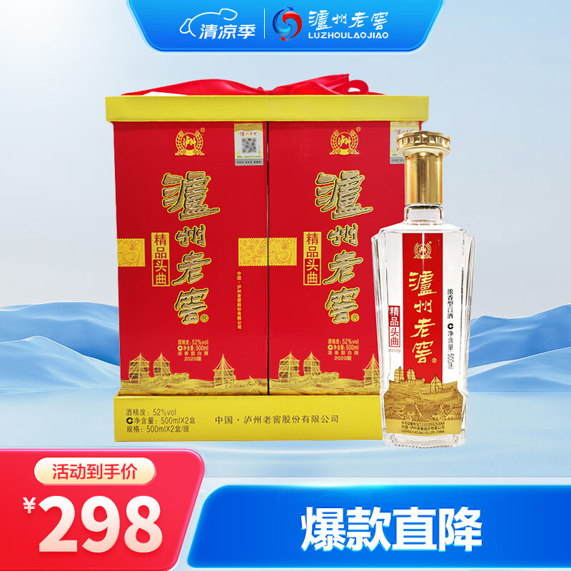 泸州老窖(LUZHOULAOJIAO) 精品头曲 浓香型白酒 52度 500ml*2瓶 送礼盒装 送礼用酒价格:298.00元!