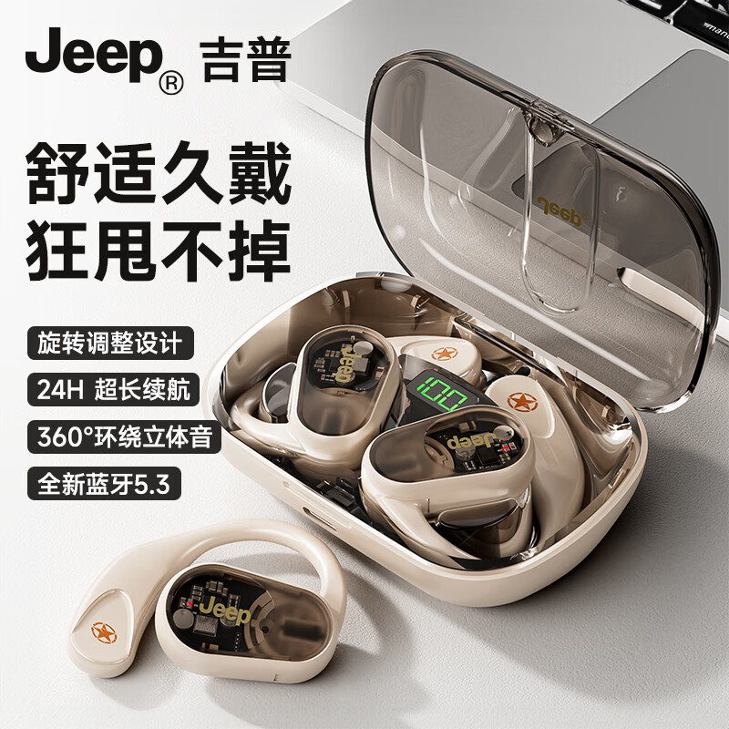 Jeep吉普【美国户外品牌】挂耳式蓝牙耳机 开放式真无线不入耳 运动跑步通话降噪运动耳机价格:159.00元!