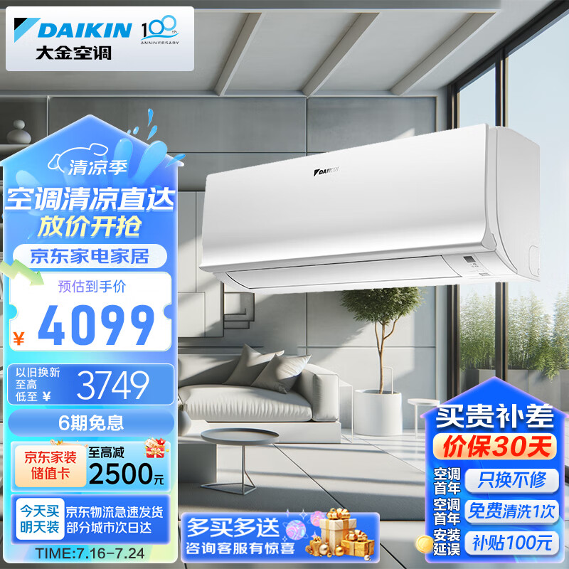 大金空调 14-19㎡适用 新三级能效 大1.5匹 变频 冷暖 家用 壁挂式 以旧换新 ATXS336WC-W价格:4099.00元!