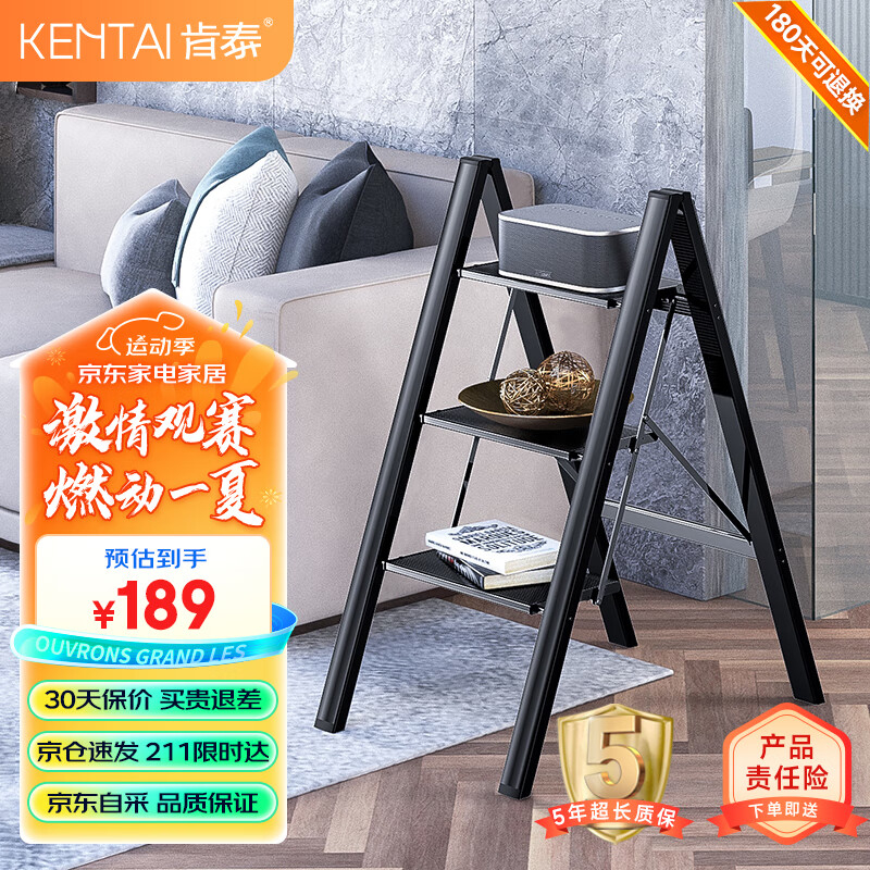 肯泰(KENTAI)梯子家用人字梯折叠伸缩梯铝合金楼梯室内工程梯爬梯三步梯A3-H3价格:295.00元!