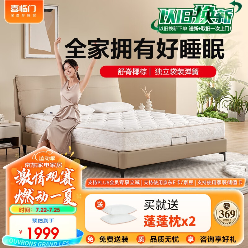 喜临门床垫 3D椰棕床垫 独袋弹簧偏硬床垫 塔利亚舒脊版1.8x2米价格:1999.00元!