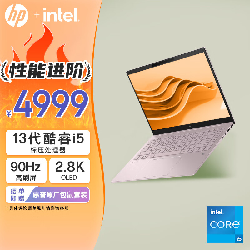 惠普HP 星Book Pro 14英寸轻薄笔记本电脑(13代酷睿i5-13500H 16G 1TB 2.8K 90Hz OLED全感屏)粉价格:4999.00元!