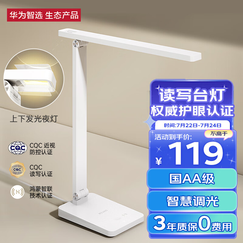 华为智选 达伦台灯国AA级照度护眼台灯近视防控护眼灯宿舍书桌读写台灯3i价格:129.00元!