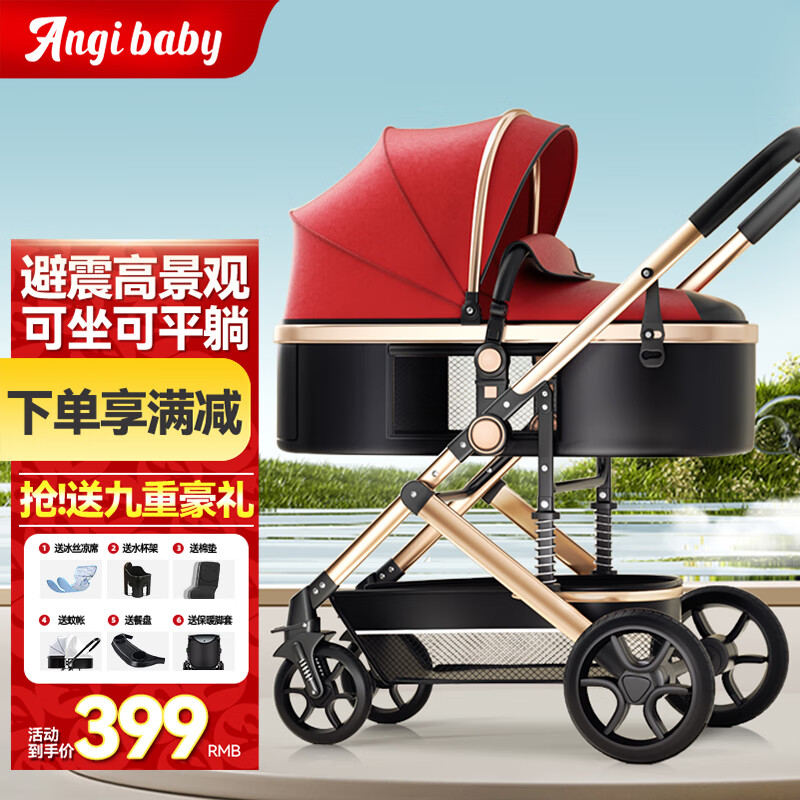 ANGI BABY婴儿推车可坐可躺可折叠婴儿车高景观双向减震手推车价格:399.00元!