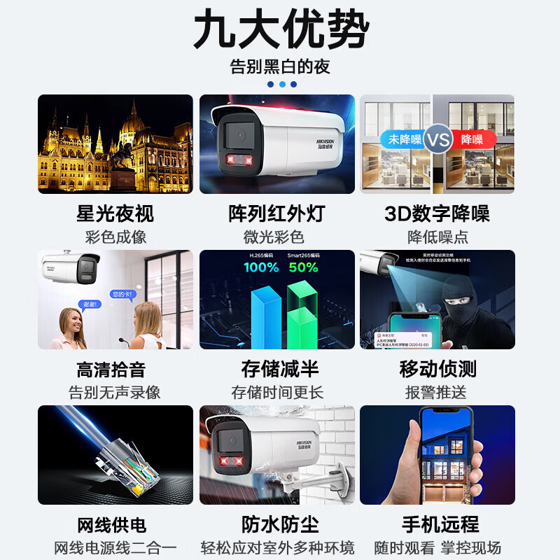 HIKVISION海康威视监控器摄像头800万4K超高清星光夜视室外手机远程可录音拾音网线供电3T86FWDV3-I3S4mm价格:656.00元!
