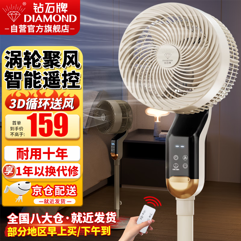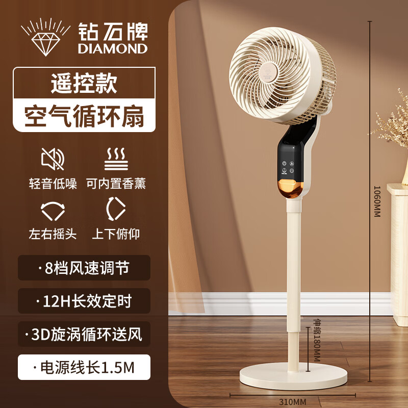 钻石牌(DIAMOND)电风扇空气循环扇落地扇家用风扇涡轮换气扇循环对流风扇落地大风量立式节能轻音电扇 【3D送风·小杏运循环扇】遥控/FX-L20R价格:219.00元!