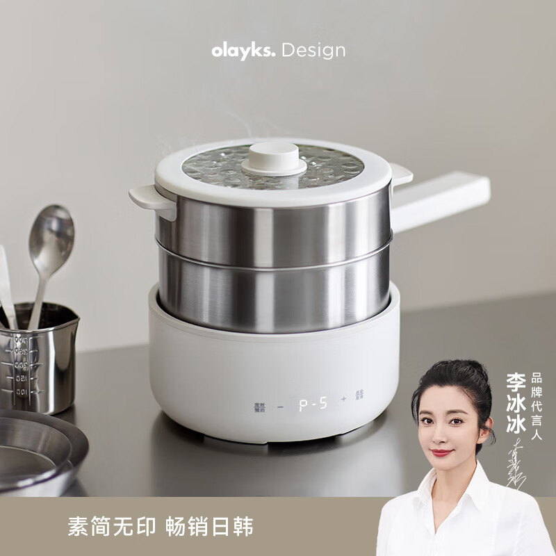 olayks立时 分体式电煮锅 电火锅 蒸煮煎炒不粘电热锅可拆洗多用途料理锅家用电蒸锅 2.5L带笼价格:259.00元!