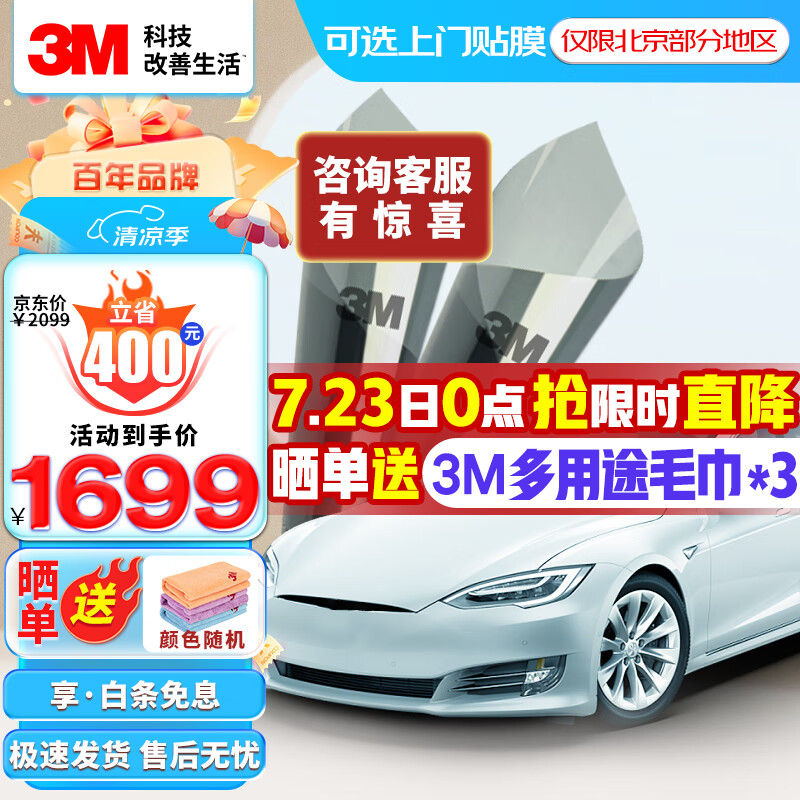 3M汽车贴膜 朗清系列 定制新能源 玻璃车膜太阳隔热车窗膜颜色备注 包施工 国际品牌价格:2099.00元!