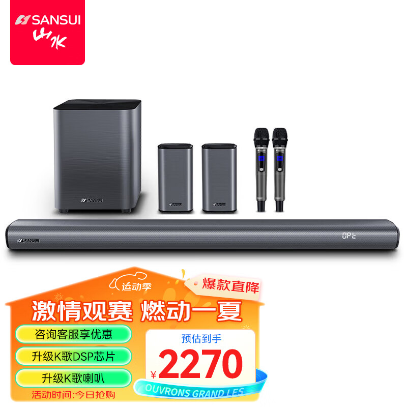 山水(SANSUI)DV-91K02回音壁 家庭KTV音响套装 5.1电视音响家庭影院无线3D环绕 家用客厅壁挂蓝牙音箱 带麦克风价格:2270.00元!