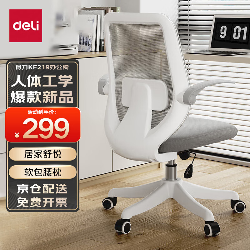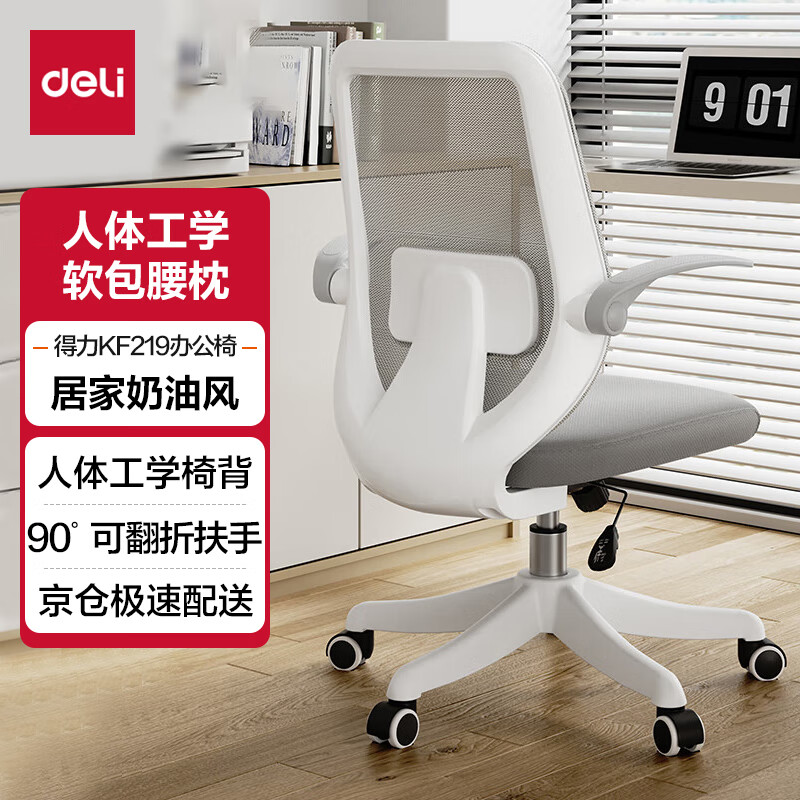 得力(deli)KF219小白胖 扶手可翻折电脑椅居家办公椅 家用舒适学习座椅 白色价格:329.00元!
