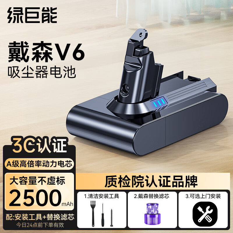 绿巨能(llano)适用戴森Dyson电池V6吸尘器电池配件 充电锂电池替代品DC59/62/74等型号大容量2500mAh 灰色价格:199.00元!