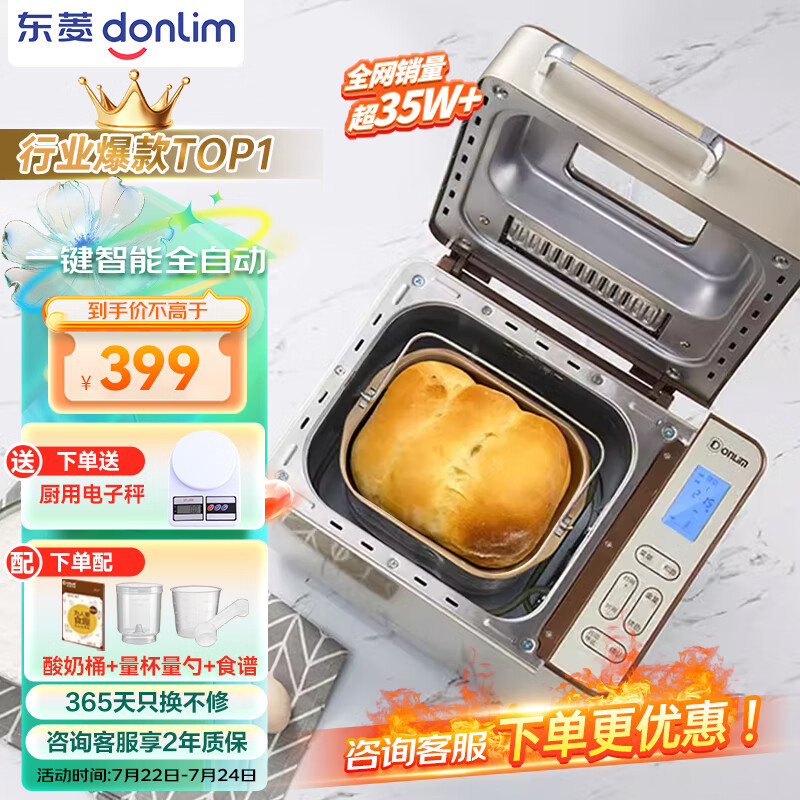 东菱Donlim 面包机 全自动 和面机 家用 揉面机 可预约智能投撒果料烤面包机DL-TM018价格:399.00元!