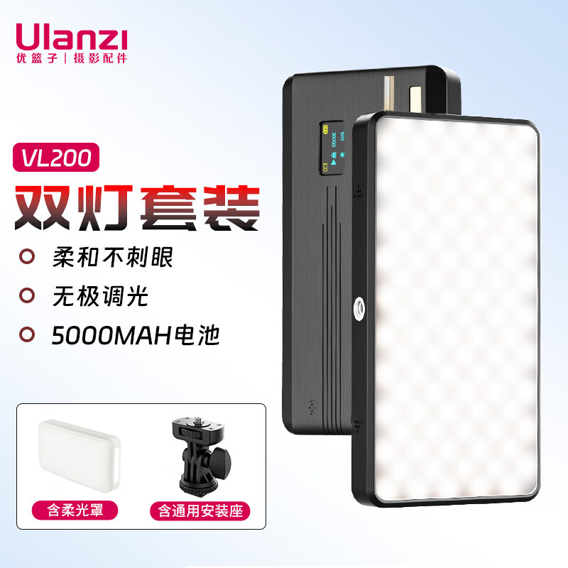 ulanzi 优篮子 VL200双色温补光灯双灯套装单反相机口袋便携直播美颜柔光灯人像摄影拍照打光灯价格:386.00元!