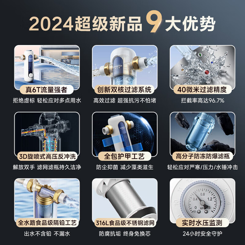 史密斯(A.O.SMITH)佳尼特前置过滤器家用净水器全屋净水小海星CPF-T6 6T真实大流量 双核过滤 3D旋喷式高压反冲洗价格:699.00元!