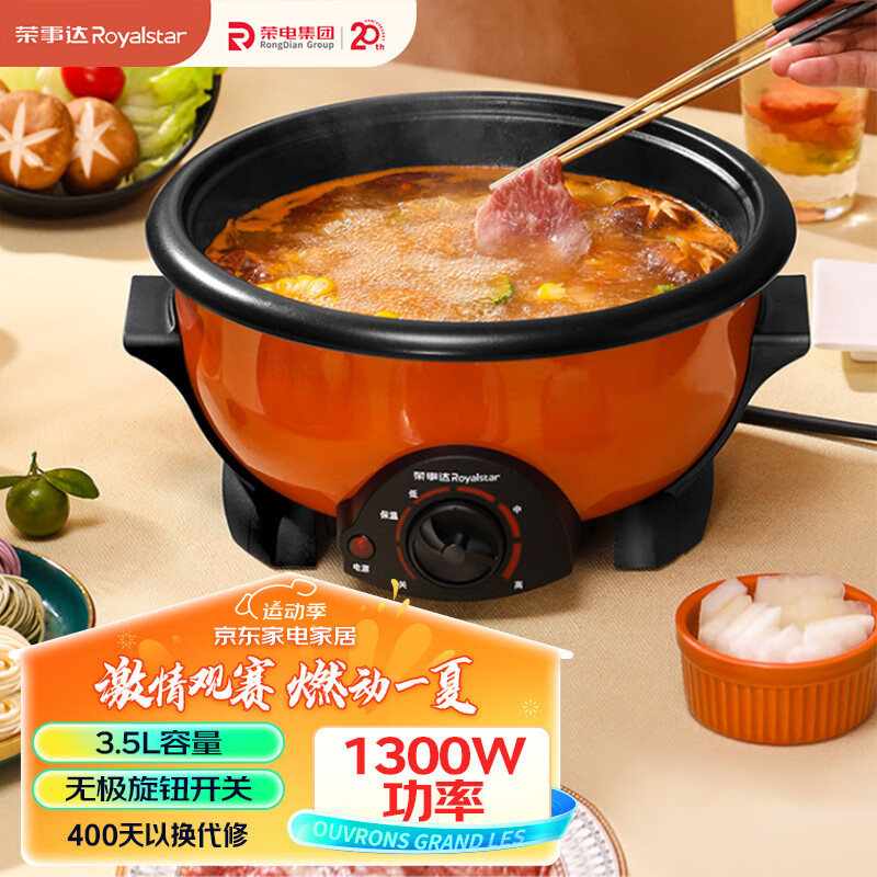 荣事达(Royalstar) 电火锅 分体电火锅 3.5L电热锅 易清洗 多用锅 电煮锅家用 RHG-35F价格:119.00元!