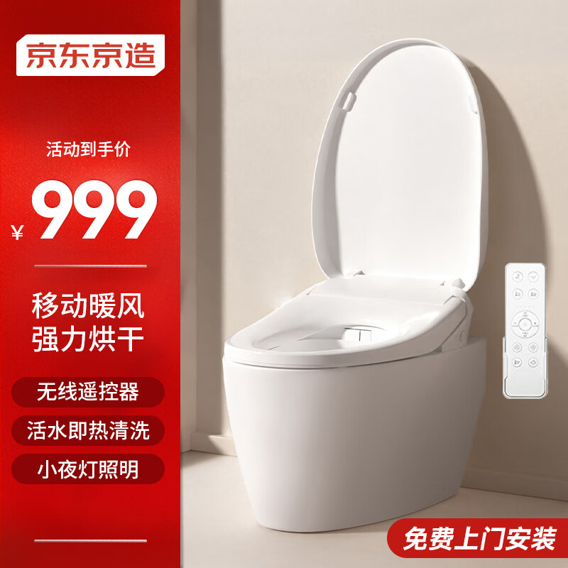 京东京造Pro智能马桶盖 全功能遥控 多档移动烘干 即热清洗 包安装价格:1099.00元!