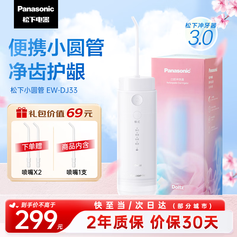 松下(Panasonic)冲牙器洗牙器水牙线小巧便携式抽拉伸缩小圆管洁牙器牙齿清洁七夕情人礼物送男友送女友DJ33乳白价格:299.00元!
