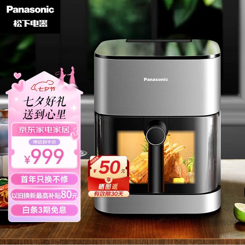 松下(Panasonic)多功能全景可视窗 家用全自动无油大容量 无需翻面 空气炸锅 NF-HC500-S价格:699.00元!