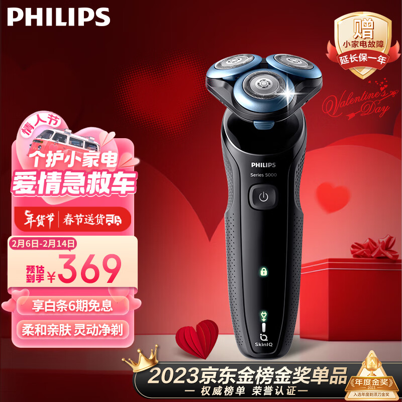 飞利浦(PHILIPS)电动剃须刀亲肤经典5系 闪电系列智能感应刮胡刀 新年礼物 情人节礼物 送男友 送老公价格:369.00元!