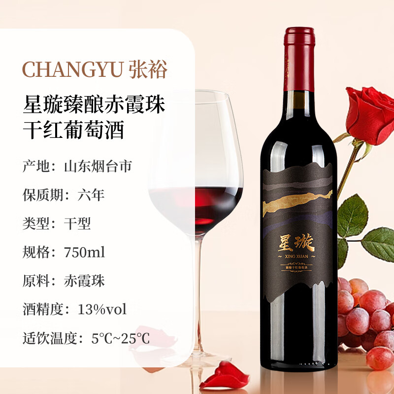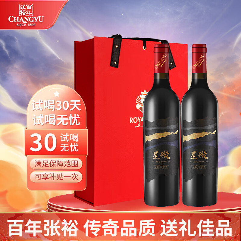 张裕(CHANGYU)星璇臻酿赤霞珠干红葡萄酒750ml*2瓶双支礼盒装 国产红酒价格:198.00元!