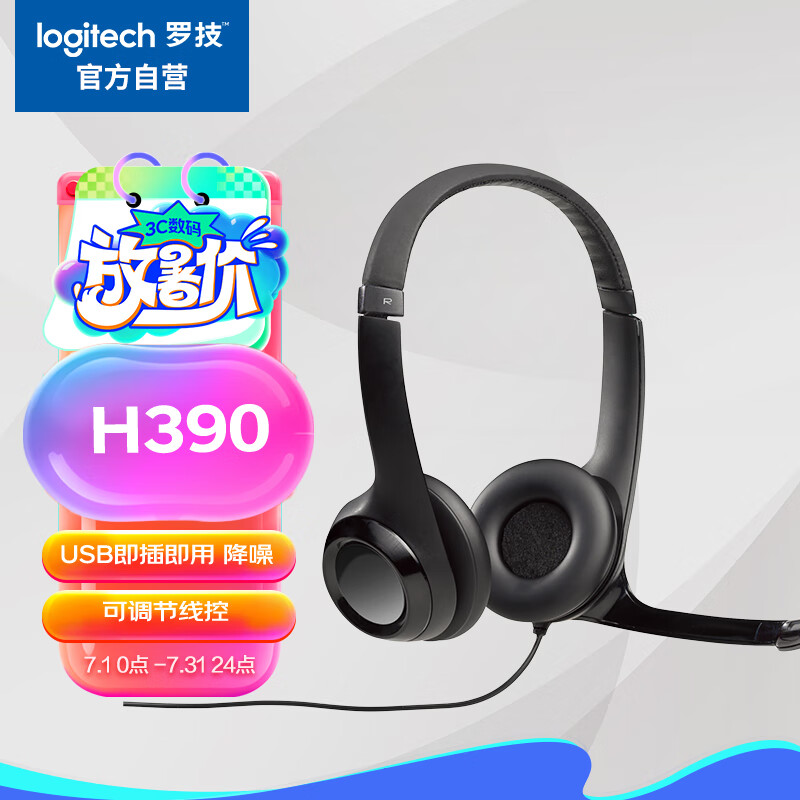罗技(Logitech)H390 立体声USB耳机 带麦克风话筒 电脑笔记本办公耳麦价格:169.00元!