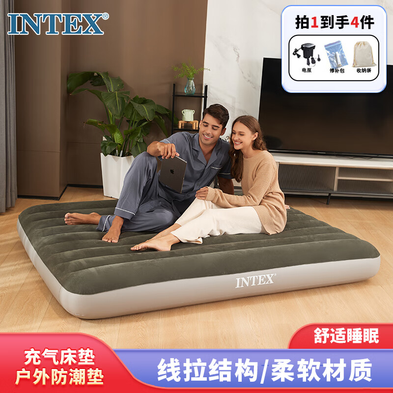 INTEX64109充气床垫露营户外防潮垫 家用睡垫陪护双人加大折叠床价格:189.00元!