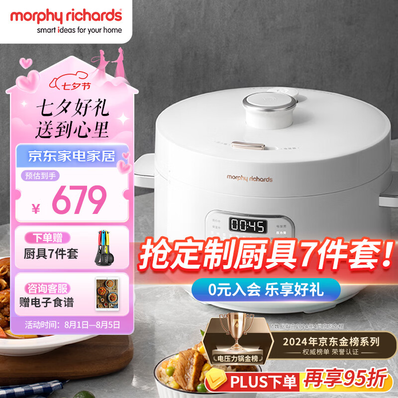 摩飞电器(Morphyrichards)电锅 家用4L多功能电高压锅电饭煲火锅 智能控压花式养生锅炖汤锅MR8700白价格:679.00元!